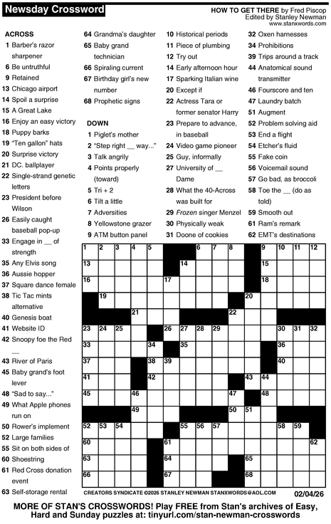 Crossword for 2/4/2026