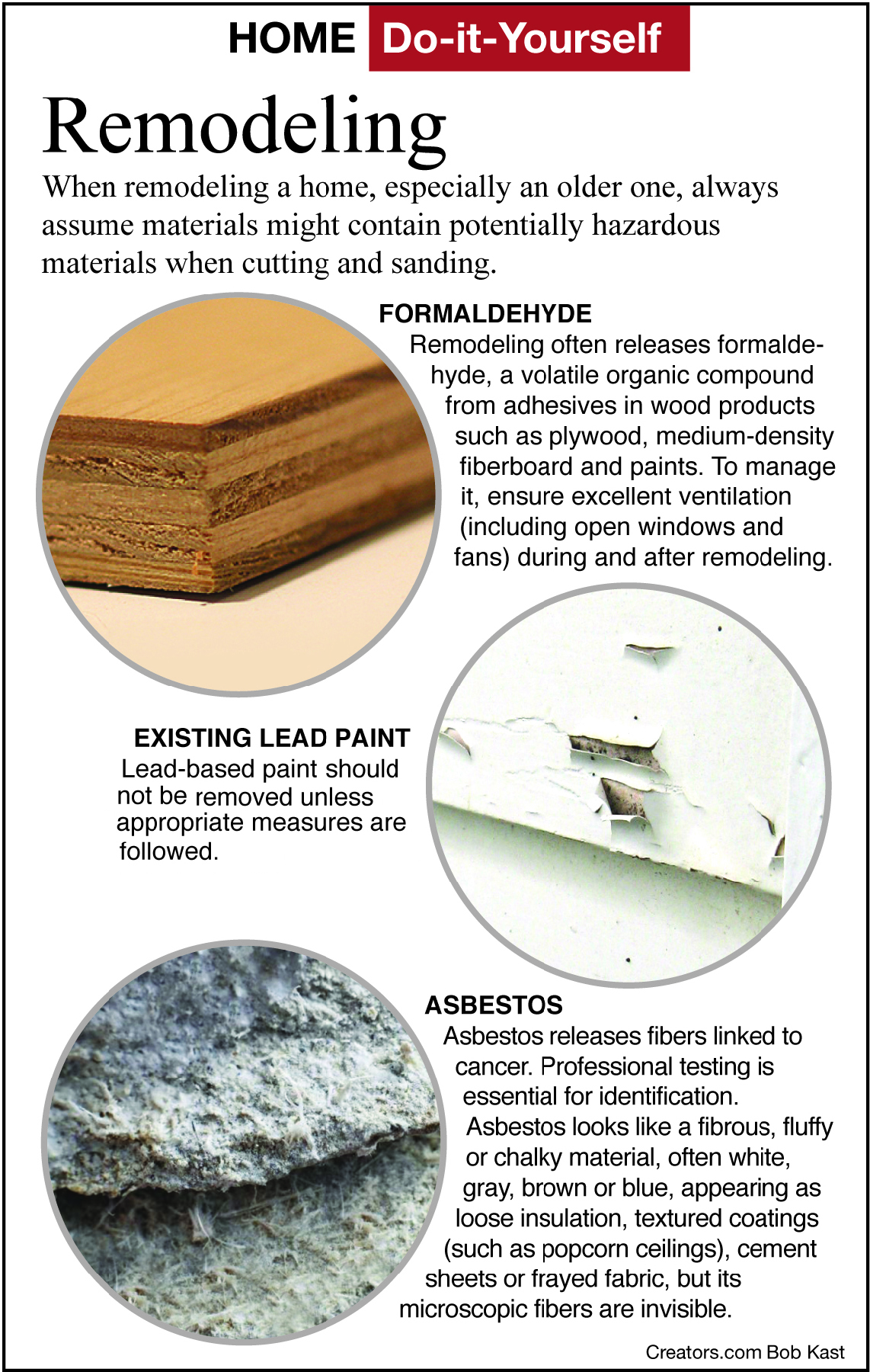 Dear James: We are getting ready to do some remodeling in our house. Being old, it may contain lead, asbestos and formaldehyde. Could these be an issue for my children? What should I know before starting? -- Jerry F.